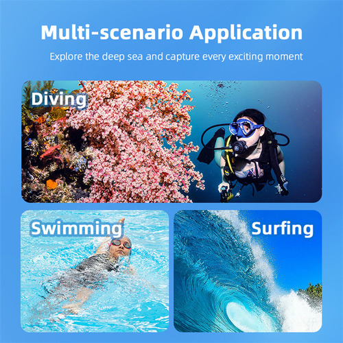 Lente de alta transparência: Equipado com uma lente de alta transparência feita de material de vidro temperado, este produto garante visuais claros e transparentes, mantendo a clareza das imagens capturadas mesmo embaixo dágua.