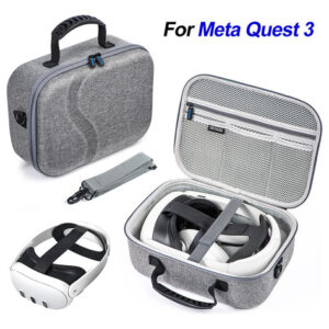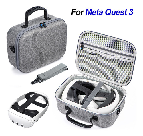 Bolsa de ombro portátil para óculos de realidade virtual, proteção portátil, estojo rígido, capacidade expansível, bolsa de armazenamento com alça para jogos de realidade virtual, adequada para Meta Quest 3. Características: 1. Projetado exclusivamente para os fones de ouvido Meta Quest 3 VR: a aparência geral e a combinação de cores deste estojo rígido foram especialmente projetadas para complementar os fones de ouvido Meta Quest 3 VR. Ele fornece espaço de armazenamento para os fones de ouvido e todo o conjunto de acessórios de elite.