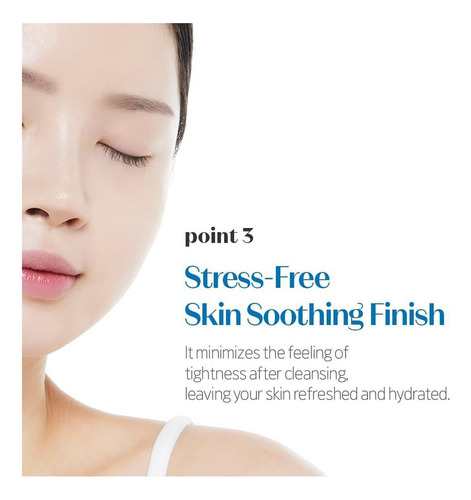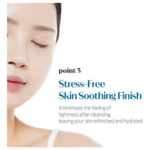 Acabamento calmante para a pele sem estresse: minimiza a sensação de tensão após a limpeza, deixando a pele renovada e hidratada