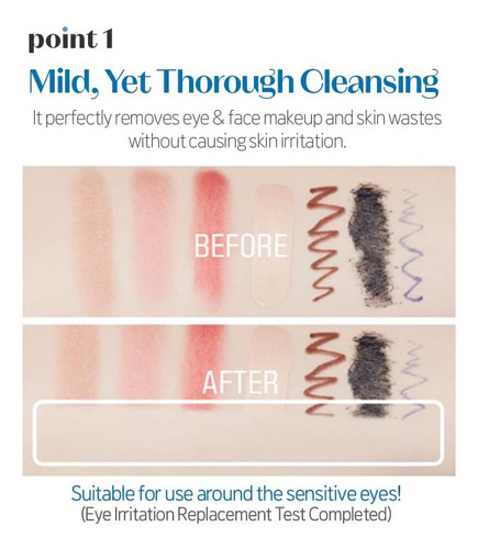 ingredientes limpos sem 11 aditivos Limpeza suave, mas completa: remove perfeitamente os olhos e o rosto maquiagem e detritos de pele sem causa irritação da pele