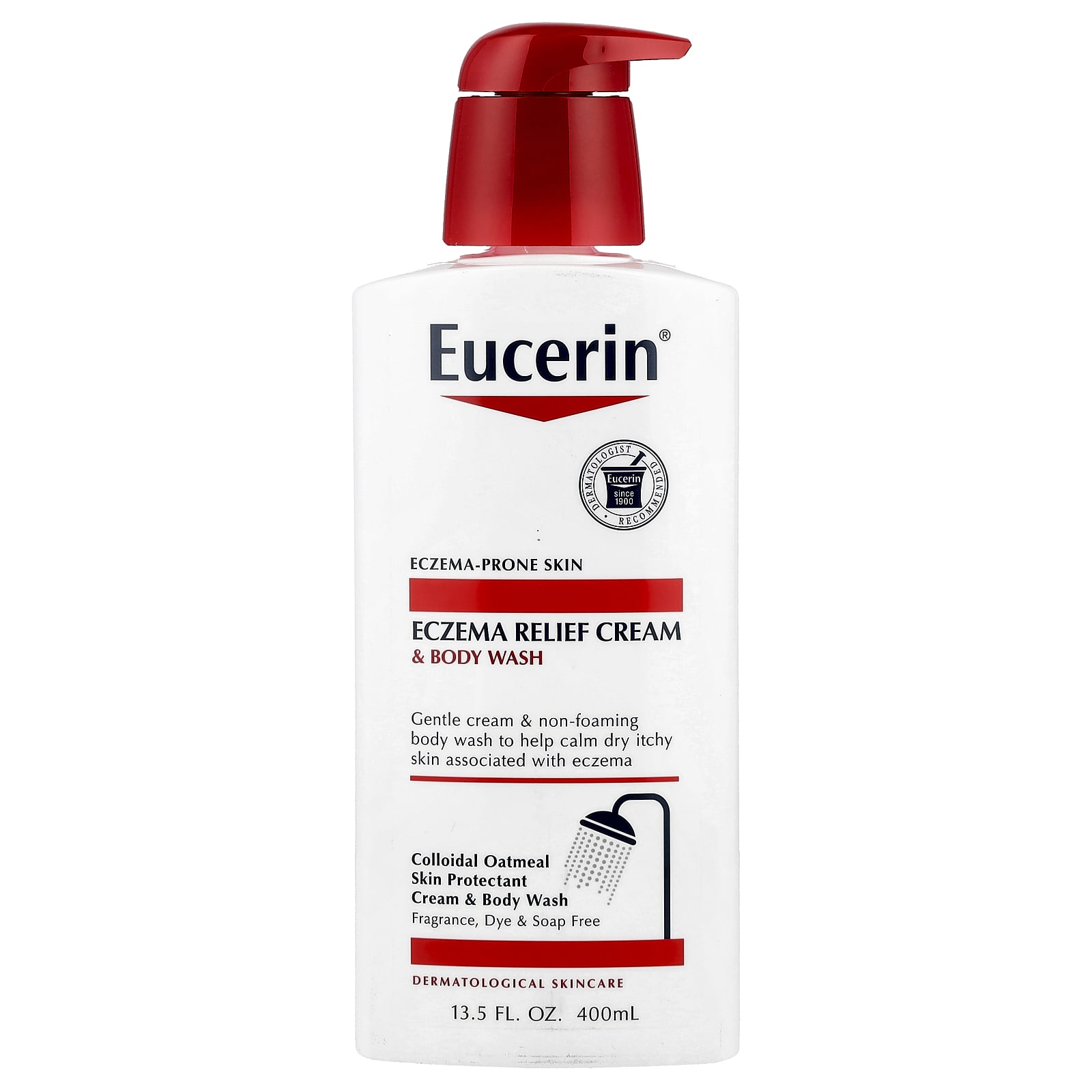 Eucerin Alívio de Eczema Creme para Lavar o Corpo 400 ml (135 fl oz) – Eucerin Banho e Cuidados Pessoais Banho Sabonete Líquido Armário do Banheiro Tratamento para Pele Pele Seca e Erupções Cutâneas.