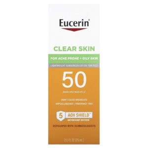 Eucerin Clear Skin Loção de Protetor Solar Leve para o Rosto FPS 50 Sem Perfume 75 ml (25 fl oz) – Eucerin Banho e Cuidados Pessoais Protetor Solar Protetor solar facial.