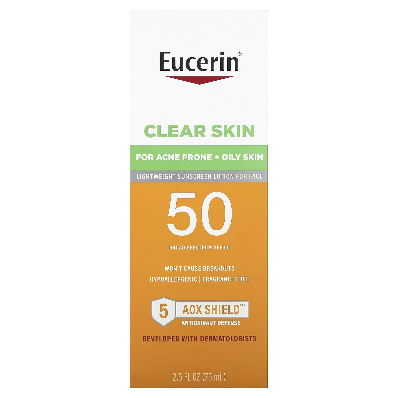 Eucerin Clear Skin Loção de Protetor Solar Leve para o Rosto FPS 50 Sem Perfume 75 ml (25 fl oz)
