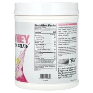 EVLution Nutrition Clear Whey 100% Isolado de Proteína Whey Limonada Rosa 500 g (11 lb) – EVLution Nutrition Nutrição Esportiva Proteína Proteína Whey Isolado protéico de soro de leite.