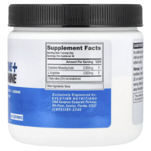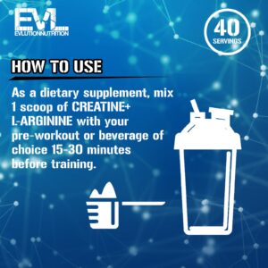 EVLution Nutrition Creatina + L-Arginina Sem Sabor 200 g (705 oz) – EVLution Nutrition Nutrição Esportiva Creatina Monoidrato de creatina Suplementos Aminoácidos L-Arginina.