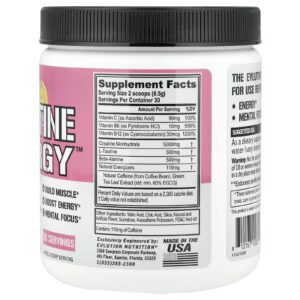 Como suplemento, misture 2 colheres medidoras de CREATINE ENERGY™ em 8 a 10 oz de água (pode variar a quantidade de água de acordo com a sua preferência).