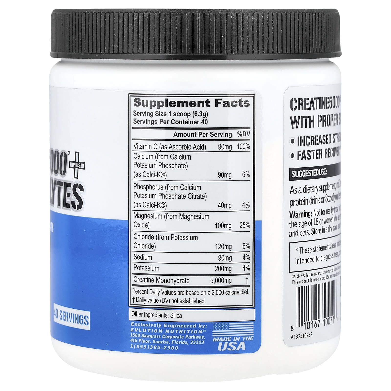 EVLution Nutrition Creatine5000® com Eletrólitos Sem Sabor 250 g (882 oz) – EVLution Nutrition Nutrição Esportiva Creatina Monoidrato de creatina Hidratação e Eletrólitos.