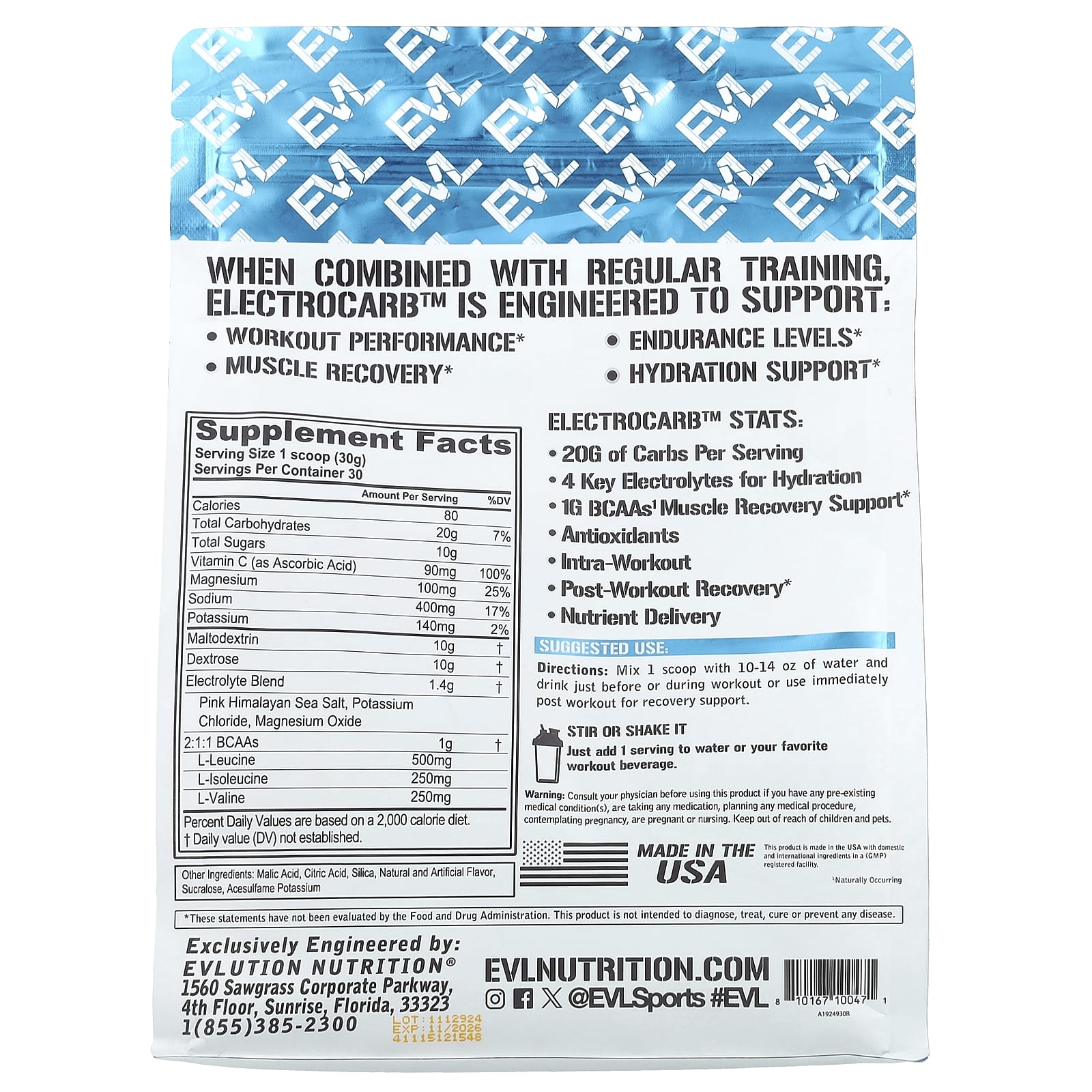 EVLution Nutrition ElectroCarb™ Framboesa Azul 900 g (3175 oz) – EVLution Nutrition Nutrição Esportiva Hidratação e Eletrólitos Suplementos para Recuperação Muscular Carboidratos em Pó.