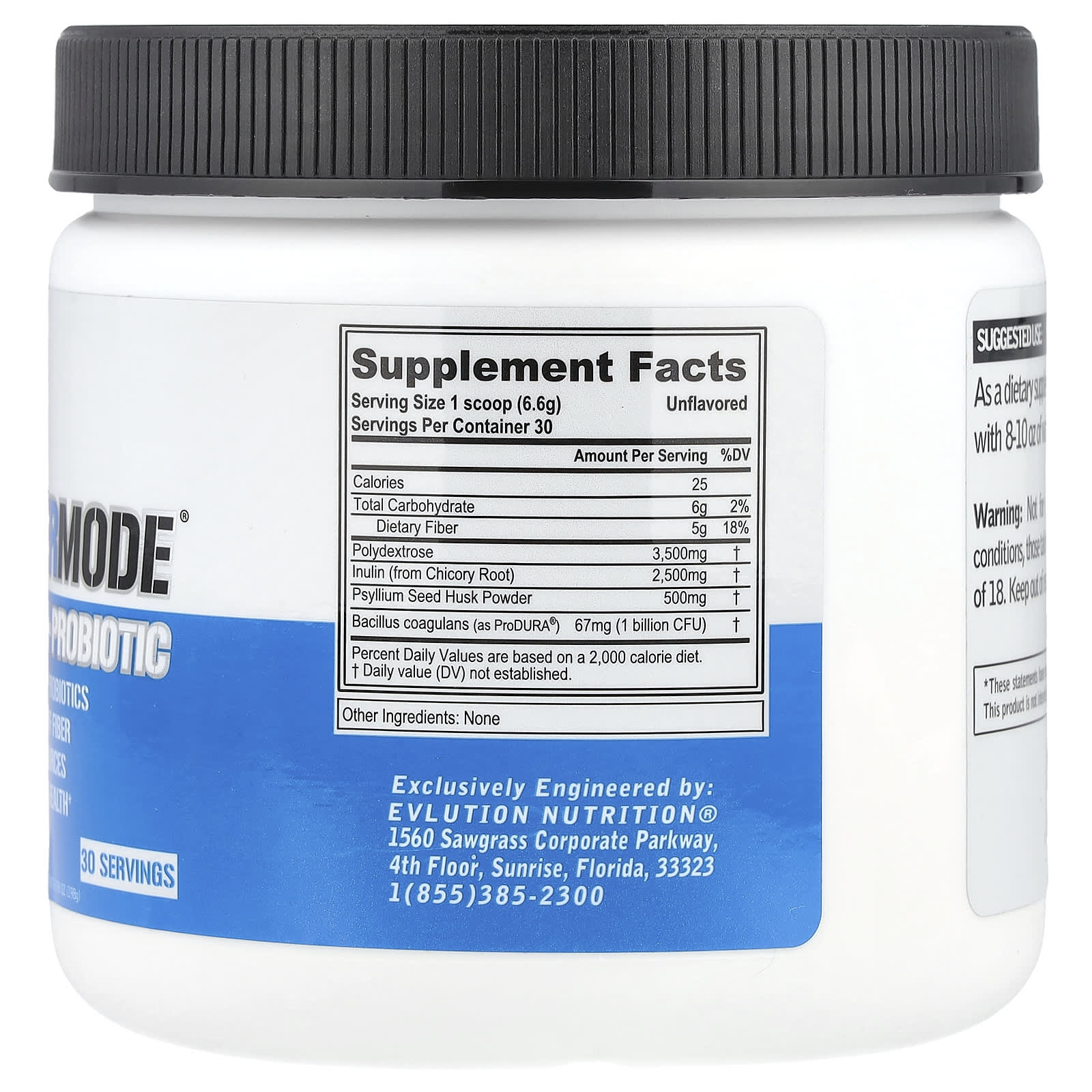 EVLution Nutrition FiberMode Fibra + Probiótico Sem Sabor 198 g (698 oz)