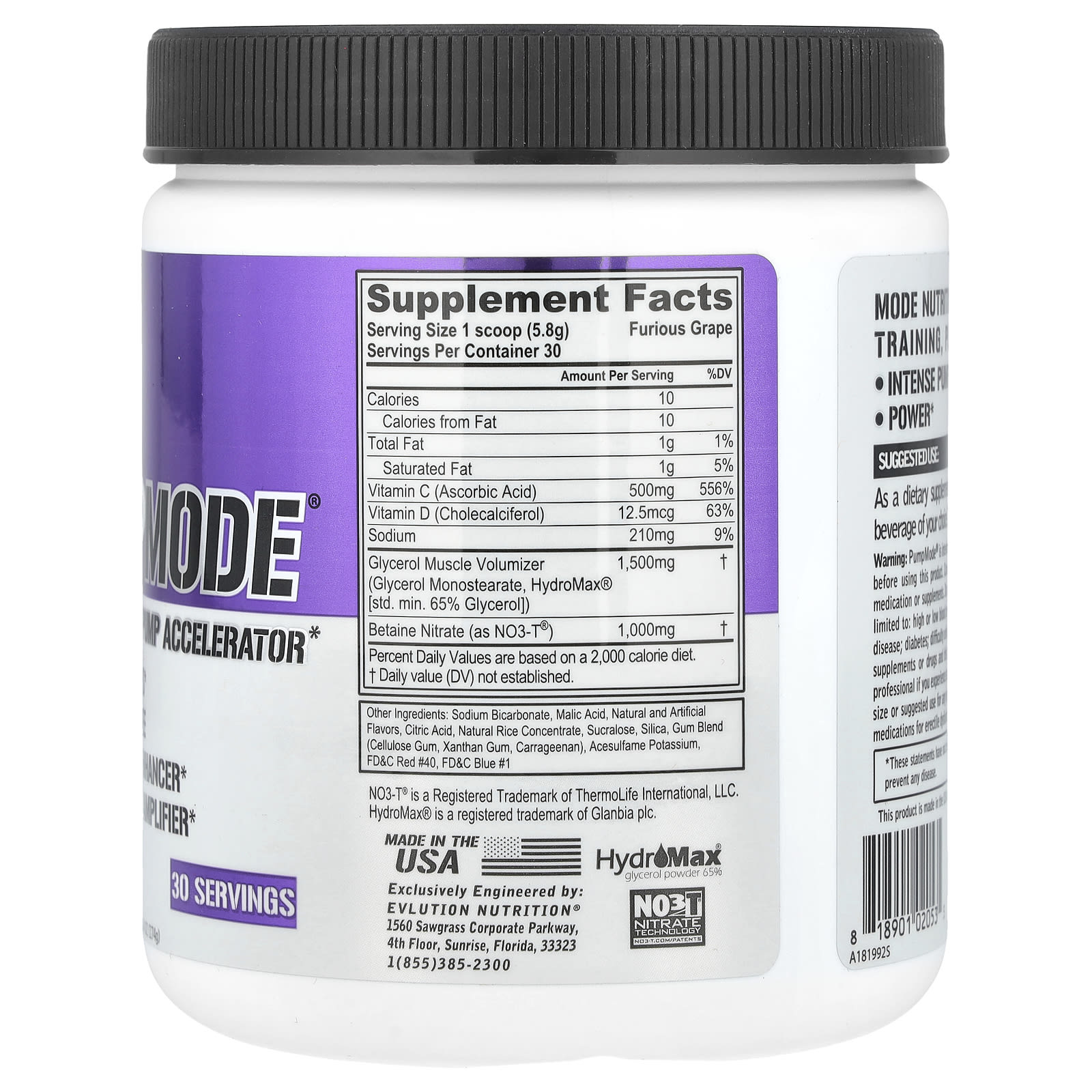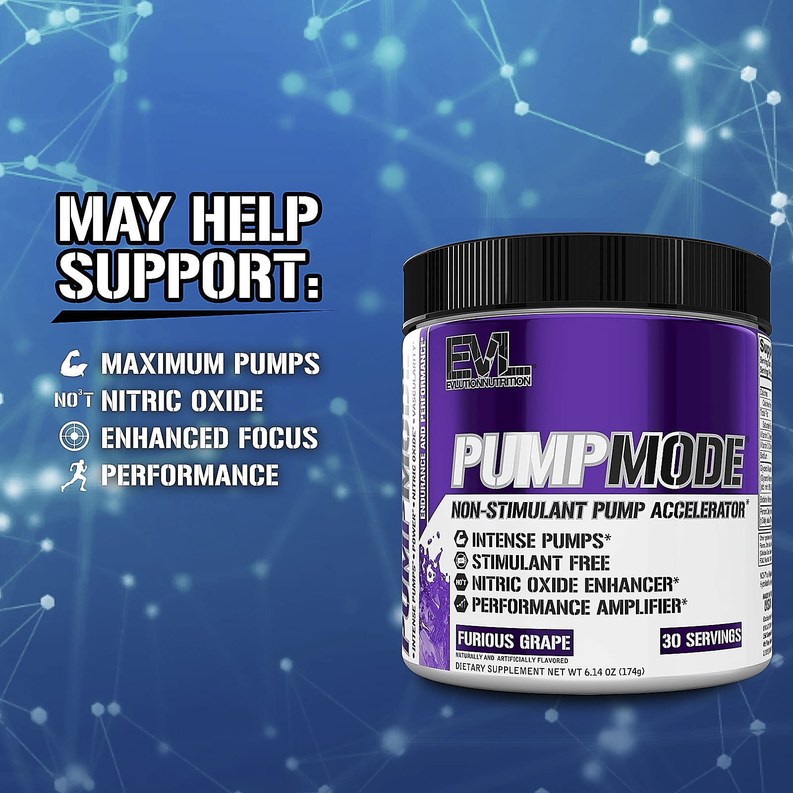 EVLution Nutrition PumpMode® Acelerador de Crescimento Muscular Não Estimulante Furious Uva 174 g (614 oz)