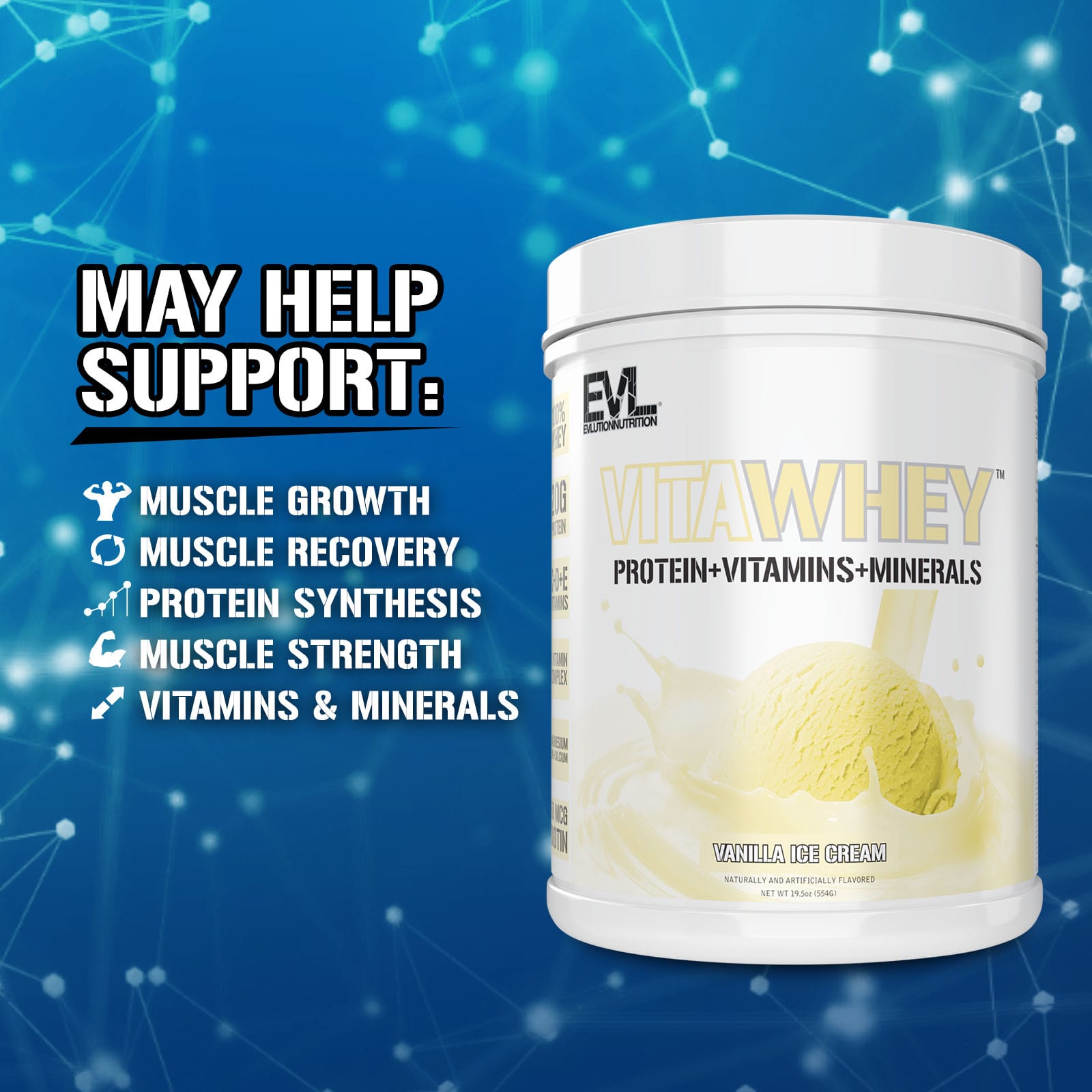 EVLution Nutrition VitaWhey™ Sorvete de Baunilha 554 g (195 oz) – EVLution Nutrition Nutrição Esportiva Proteína Proteína Whey Concentrado protéico de soro de leite Suplementos Vitaminas Multivitamínicos.