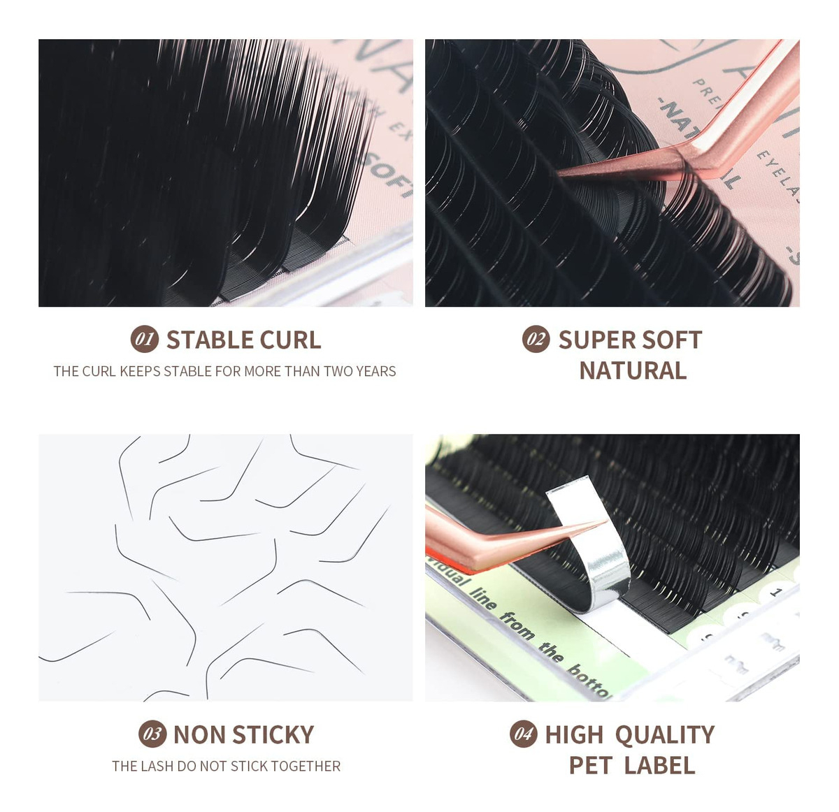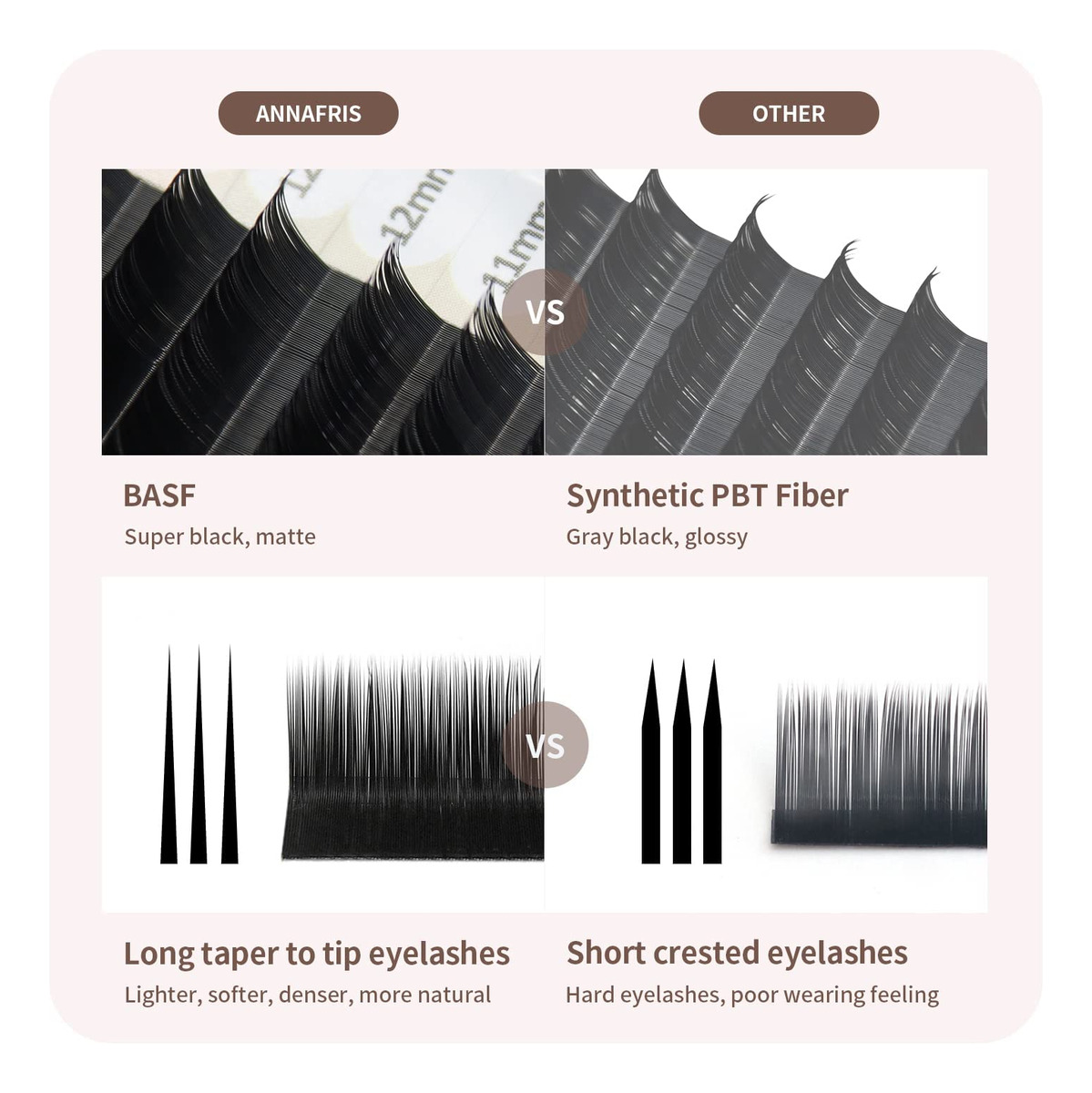 Cílios ANNAFRIS L, Cílios individuais L+/LC/LD/LU (M) Cílios individuais Extensão fosca de seda natural Cílios postiços Cils Faux Cils Maquillage L curl Extensão de cílios individuais 1. Material PBT importado da Coreia 2. Preto fosco ultra natural 3. Suavidade perfeita 9 principais vantagens 1: Os cílios ANNAFRIS são importados pela Coréia Materiais de fibra PBT sintética especialmente pesquisados: leves, naturais e macio. 2:80C de resistência a altas temperaturas. 3: Pode ser facilmente removido da fita. 4: A forma permanece inalterada por mais de 1 ano. 5: O papel de parede de alta qualidade evita qualquer resíduos no modelador de cílios e a supercola podem ser reciclados. 6: A embalagem resistente evita qualquer dano durante o transporte. 7: Somos fabricantes, oferecemos saídas rápidas com o melhor preço. 8: Nossos cílios são autorizados pela MSDS e SDS, totalmente feitos à mão, sem testes em animais. 9: O preço a granel e as etiquetas personalizadas podem ser negociados. – Especificação: Espessura: 0,07 mm/0,10 mm, CurlL: L/L+/LC/LD/LU (M), comprimento: 8-15 mm misto – Novo estilo popular: L L+ LC LD LU são novos e aquecidos até dobrar duas vezes, então nossa ondulação é muito estável, mantenha-a perfeitamente. Os cílios são fáceis de enxertar, sem resíduos e torções. – Fácil de usar: as tiras de película são fáceis de remover da base e os cílios também podem ser retirados das tiras com facilidade. Suprimentos de extensão de cílios para profissionais de salão de beleza, economizam muito tempo. – Curvatura estável: resistência a altas temperaturas de 80C. O formato permanece inalterado por mais de 1 ano. – Serviço de qualidade: se você não estiver satisfeito com nossos produtos, entre em contato conosco diretamente e faremos o melhor por você.