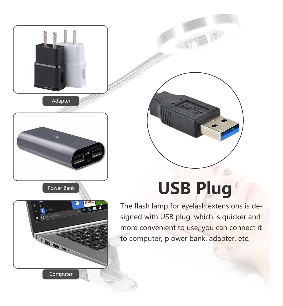 Descrição: Esta lâmpada USB é usada principalmente para tatuagem de sobrancelha, tatuagem, manicure, extensão de cílios, etc. O tubo pode ser dobrado livremente, você pode ajustar a altura e a direção da lâmpada com flexibilidade. O clipe facilita a fixação firme na mesa. Com longa vida útil de até 20.000 horas. Adotando economia de energia e luz LED brilhante, ela não pisca e ajuda a proteger seus olhos. Seu tamanho portátil e seu interruptor simples facilitam o uso Especificações: Condição: 100% novo Tipo: lâmpada de tatuagem Material da cabeça da lâmpada: alumínio Material do clipe: metal Tensão da lâmpada: 5VCor: prata Tamanho: Aprox. 50* 9* 5 cm/19,7 * 3,5 * 1,9 polegadas Peso da embalagem: Aprox. 350 g O pacote inclui: 1 x lâmpada de tatuagem 1 x linha USB Nota: Este produto é apenas a lâmpada, qualquer outra coisa nas fotos é não incluído. Observe que o novo tipo e o tipo antigo deste produto serão enviados aleatoriamente e certifique-se de não se importar antes de fazer o pedido. – Luz LED O anel de luz para extensão de cílios adota luz LED brilhante e economizadora de energia, sem cintilação, luz suave e confortável, boa para proteger seus olhos. – Plugue USB A lâmpada de flash para extensões de cílios foi projetada com plugue USB, que é mais rápido e conveniente de usar, você pode conecte-o ao computador, banco de energia, adaptador, etc. – Design flexível e ajustável A cabeça da lâmpada de alumínio é durável, o tubo da lâmpada pode ser dobrada livremente e a altura e a direção da luz dos cílios podem ser ajustadas de forma flexível de acordo com suas necessidades. – Portátil e firme A lâmpada Nail Tech tem um interruptor de tamanho compacto e fácil de operar, e o clipe na parte inferior da lâmpada pode ser fixado com facilidade e firmeza na mesa, o que é fácil de usar e transportar. – Ampla aplicação. Esta luz USB é usada principalmente para tatuagem de sobrancelhas, tatuagem, manicure e extensão de cílios, luminária de mesa para proteger seus olhos e ajudá-lo a trabalhar com eficiência.