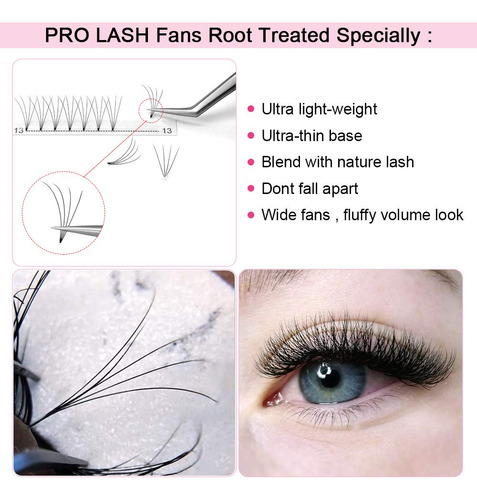 Extensões de cílios de volume pré-fabricadas — Extensões de cílios PROLASH Premade Fans: haste curta em 3D 4D 5D 6D 7D 8D, com curvatura C/D em 0,07/0,10. Temos uma bandeja de 9 mm a 20 mm de comprimento único e 9-15 de comprimento misto. Se você precisar de um único comprimento 4D, escolha o ASIN: B08C9RJRRS. – Materiais de alta qualidade: o PTB preto faz com que as extensões dos cílios resistam a altas temperaturas. Essas extensões de cílios são muito macias, leves e de boa qualidade. As extensões volumosas de cílios gostariam de seus próprios cílios e são veganas. – Técnicas especiais para raízes: as extensões de cílios volumosos pré-fabricadas PRO usam um método exclusivo de colagem com aquecimento duplo para garantir que a extensão dos cílios não se desfaça ao retirar os ventiladores da faixa. A raiz das extensões dos cílios do ventilador é muito apertada e fina para ser imperceptível. – Curvatura estável: as extensões de cílios de volume PROLASH Premade têm ondulações estáveis que podem suportar diferentes condições. A flexibilidade dos ventiladores de extensão de cílios pré-fabricados é como cílios naturais. Eles poderiam manter o cacho perfeito por cerca de 12 meses e não perderiam o cacho facilmente. – Garantia: oferecemos uma garantia vitalícia de devolução do dinheiro a cada cliente! Se você não estiver completamente satisfeito com nossa extensão de cílios, entre em contato conosco pelo FB/IG: ProLashBeauty. Nós reembolsaremos você sem exceção.