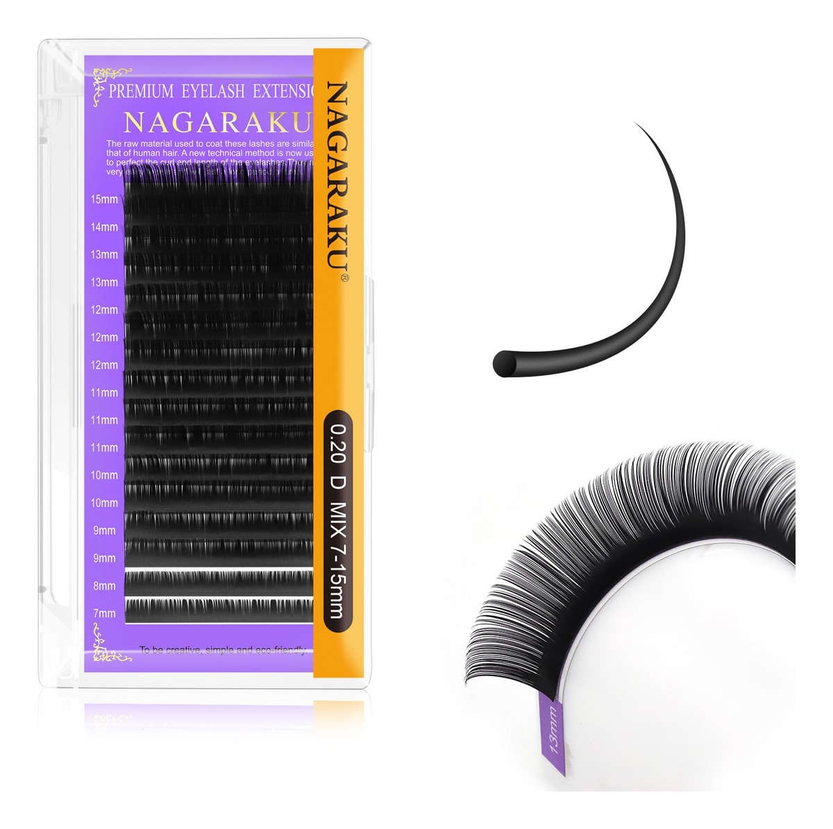 Extensões de cílios NAGARAKU, 0,20 mm D curl 7-15 mm, bandeja de mistura, cílios individuais, clássicos, pretos foscos, vison sintético, de 16 fileiras. Suaves e leves: nossos cílios são feitos de materiais premium NAGARAKU PBT, totalmente feitos à mão, que são muito macios, leves, naturais e confortáveis para uso profissional em salões de beleza. – FÁCIL DE USAR: a exclusiva faixa de transferência traseira em alumínio é removível sem resíduos. Os cílios estão totalmente separados e sem dobras. Fácil de aplicar. – Ótima ondulação: o processo especial de curvatura fará com que os cachos durem muito tempo, o que proporciona uma aparência natural e encantadora. – Preto natural: com a cor preta fosca, que se aproxima dos cílios naturais. – PROMESSA DE QUALIDADE: NAGARAKU verifica cada cílio cuidadosamente antes da entrega para garantir que você tenha uma experiência perfeita. Se houver algo errado com o produto adquirido, informe-nos a qualquer momento e nós o substituiremos ou reembolsaremos imediatamente.