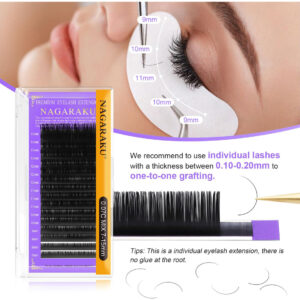 Extensões de cílios NAGARAKU Cílios individuais 0,07 mm C ondulação 14 mm Classic Matte Black Soft Natural Professional Suprimentos de salão de beleza de 16 fileiras – MACIOS E LEVES: nossos cílios são feitos de materiais NAGARAKU PBT premium, totalmente feitos à mão, que são muito macios, leves, naturais e confortáveis para uso profissional em salões de beleza. – FÁCIL DE USAR: a exclusiva faixa de transferência traseira de alumínio é removível sem resíduos. Os cílios estão totalmente separados e sem dobras. Fácil de aplicar. – Ótima ondulação: o processo especial de curvatura fará com que os cachos durem muito tempo, o que proporciona uma aparência natural e encantadora. – Diâmetro fino: espessura real de 0,07, supermacio e é mais fácil criar ventiladores de volume fofos. – PROMESSA DE QUALIDADE: NAGARAKU verifica cuidadosamente cada cílio antes da entrega para garantir que você tenha uma experiência perfeita. Se houver algo errado com o produto adquirido, informe-nos a qualquer momento e nós o substituiremos ou reembolsaremos imediatamente.
