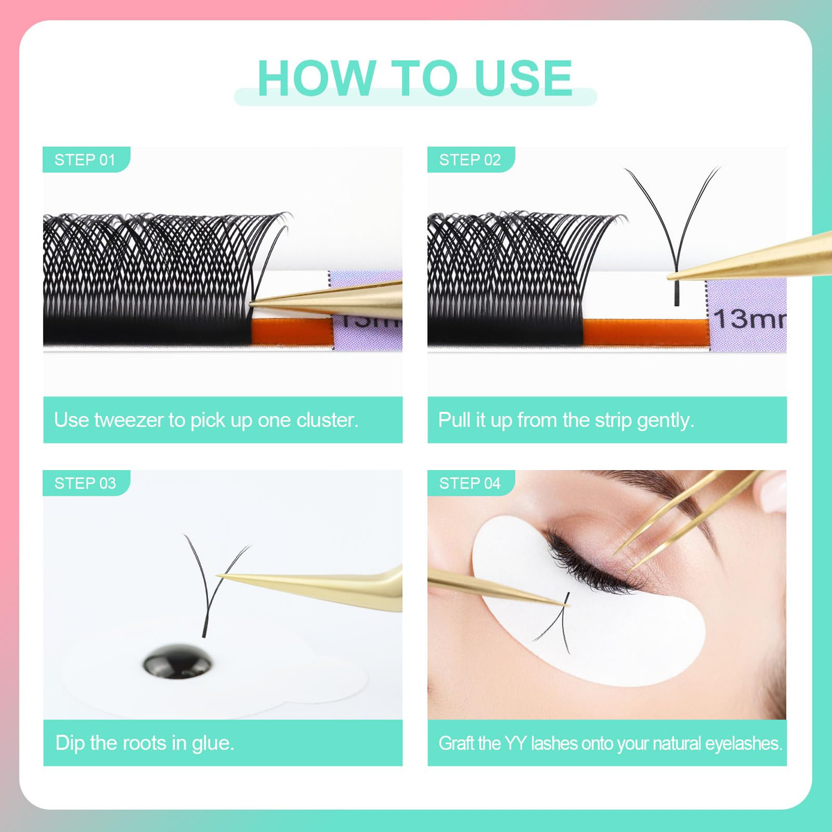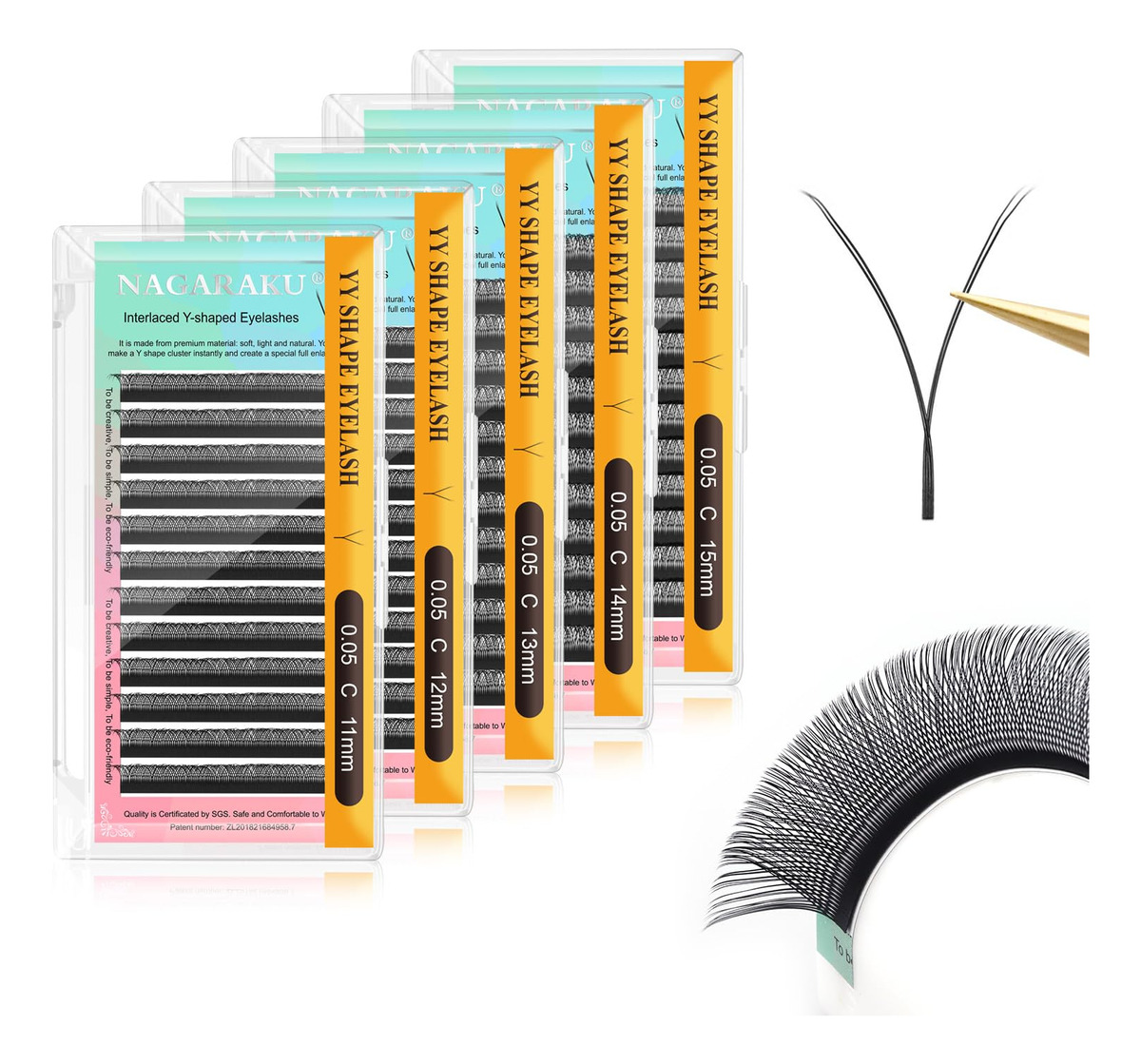 NAGARAKU 5 bandejas yy Eyelash Extensions y lash 0,05 mm C curl 11/12/13/14/15 mm em 1 pacote Premade 4D Easy Fan Russian Volume Cluster Faux Mink Matte Black 12 linhas – YY Lash: Tem 4 extensões unidas, o que é muito simples de criar ventiladores ao pegar com uma pinça, sem necessidade de nenhuma habilidade. Obtenha um cacho 4D instantaneamente. – Aparência única: o formato YY especial com duas pontas de cílios torna a extensão mais graciosa e macia, enquanto você pode obter um efeito delineador. – Economia de tempo: aplicação rápida, para uma pessoa só precisa de 50 a 60 pacotes, o que economiza muito tempo, e tem 12 fileiras em uma bandeja. – Material premium: feito com o material exclusivo pesquisado e desenvolvido, é leve, macio e natural. – Fácil de usar uso: O papel de parede Foils é conveniente para pegar e transferir, não há resíduos no ladrilho dos cílios.