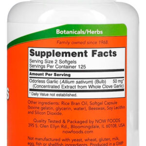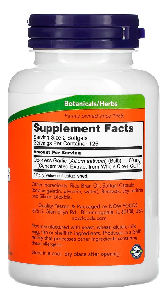 Extrato Alho Inodoro Now Foods 250 Soft Importado