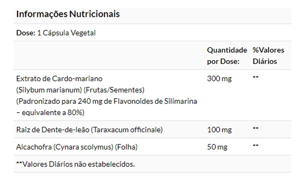 1. Benefício Principal: O Cardo Mariano é conhecido por seu potencial para apoiar a função hepática, promovendo a desintoxicação e o bem-estar. Este extrato concentra essas propriedades, proporcionando um suporte eficiente ao organismo. Esta fórmula vegetariana também inclui alcachofra e dente-de-leão para suporte adicional.