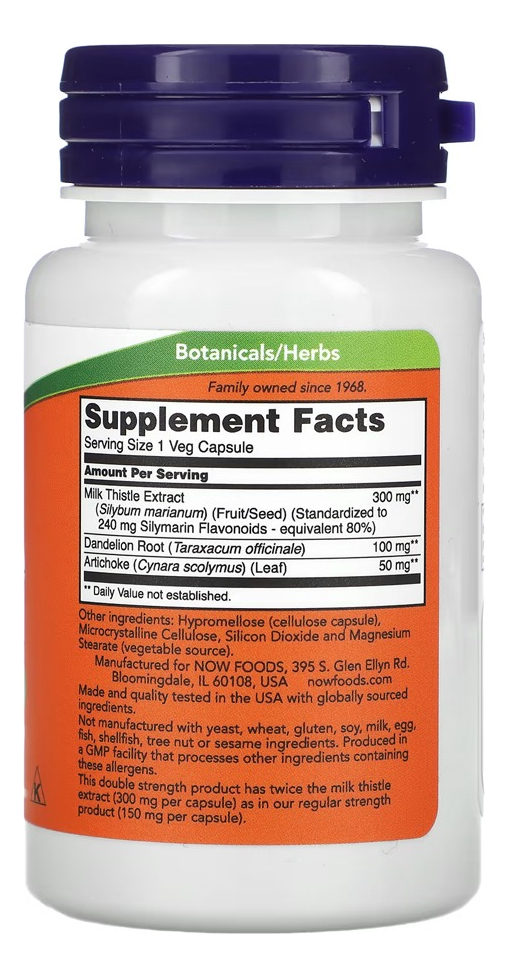 Extrato Cardo Mariano 300mg Now Foods 50 Veg Cáps Produto Importado Original
