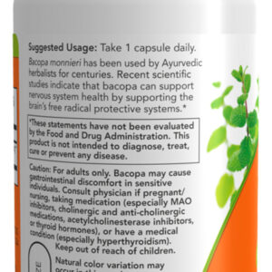 Extrato De Bacopa 450mg Now Foods 90 Cápsulas +porta Cápsula