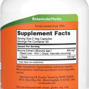 Extrato de Dopa Mucuna Now Foods 180 Veg Caps Produto Importado