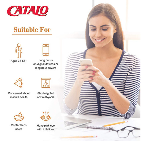 Contém uma combinação potente de extratos naturais que fornecem antioxidantes essenciais para manter a clareza e a saúde dos olhos.