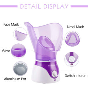 O vaporizador facial Beauty Nymph com inalador de vapor oferece todos os benefícios de um tratamento a vapor de spa em casa. Com uma máscara facial completa, a sauna facial usa vapor para abrir os poros, ajudando a remover impurezas e limpar profundamente a pele. O nível de vapor ajustável oferece controle total. – Vaporizador facial completo para cuidados intensivos com a pele, desobstrui os poros para remover a sujeira, usado em tipos de pele normal, oleosa, seca, mista e sensível – Torna a pele neutra ideal: macia, hidrata e rejuvenesce para uma pele brilhante. – Ajustável níveis de vapor, pote vaporizador de alumínio seguro de alta qualidade, função de desligamento automático. – Cuidado facial a vapor: depois de usar o limpador facial, cozinhe no vapor cuidado facial com vapor por 8 a 10 minutos (de acordo com o tempo facial a vapor do condicionador de pele diferente), para que os poros faciais se abram totalmente. – Sauna facial, use como parte do regime regular de cuidados com a pele para obter resultados visíveis, vaporizador de óleo essencial: adicione seus óleos essenciais ou aromaterapêuticos favoritos. – Use como cuidado facial direto ou simplesmente deixe o vaporizador funcionar como umidificador interno em qualquer clima.