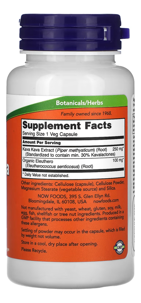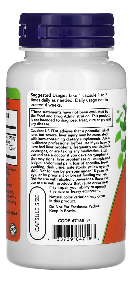 Extrato Kava Kava 250mg Now Foods 60 Caps + Porta Cápsulas