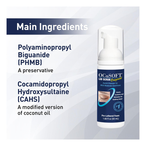 Limpador de pálpebras espumante original OcuSoft — Espuma instantânea suave para remover óleo, poeira, pólen e maquiagem — 1,68 fl oz — Limpador seguro e eficaz com fórmula não irritante — Remova de forma suave e eficaz o óleo das pálpebras, o pólen e a maquiagem dos olhos com este sabonete para pálpebras e cílios. A formulação não irritante é segura para uso diário. – Para irritações leves a moderadas nas pálpebras – Melhore o conforto das lentes de contato e remova a maquiagem com este limpador de pálpebras e cílios em uma formulação não irritante para olhos e pele sensíveis. – Limpador instantâneo de espuma – Quando você comprime a bomba de ponta de controle, ela produz uma espuma pré-ensaboada para criar espuma instantaneamente, facilitando ainda mais o regime de higiene das pálpebras! – A OcuSoft é uma marca recomendada por médicos para olhos saudáveis e a distribuidora preferida de produtos e suprimentos oftalmológicos entre os profissionais de oftalmologia.