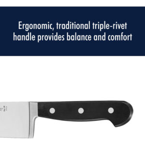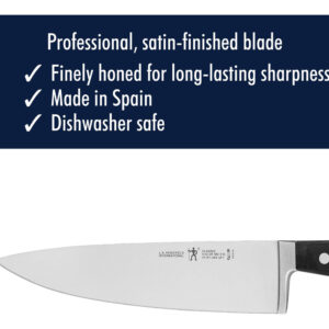 Faca de corte clássica HENCKELS de 8 polegadas, projetada na Alemanha com base em mais de 100 anos de domínio, aço inoxidável – LÂMINAS ULTRA-AFIADAS: nitidez superior de nível profissional que garante um corte preciso. – Permanece afiada por mais tempo: a lâmina profissional com acabamento acetinado possui corte preciso e é finamente afiada para uma nitidez duradoura: desfrute de uma preparação fácil de refeições com o mínimo de esforço com esta faca leve e fácil de usar faca. – TAREFAS DE COZINHA: fatiar, picar e picar vegetais, frutas e ervas, até cortar grandes pedaços de carne e ossos desarticulados e muito mais. – LIMPEZA RÁPIDA: Limpeza sem complicações, na máquina de lavar louça ou à mão. Lâminas sem manchas e ferrugem. – Vale a pena gastar: as facas HENCKELS começam afiadas e permanecem afiadas por mais tempo, mesmo com o mínimo de cuidado. – Lâmina durável: a construção totalmente forjada oferece durabilidade e uma transição perfeita da lâmina para o cabo. – A ÚLTIMA FACA QUE VOCÊ PRECISARÁ COMPRAR: faca de engenharia alemã informada por mais de 100 anos de domínio. As facas HENCKELS são feitas para durar. – Espessura da lâmina: 0,08 pol