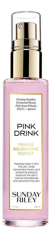 Sunday Riley Pink Drink Skin Firming Resurfacing Essence Face Mist – Peptides help firm the skin, while fermented honey and botanical extracts balance the skins natural microbiome and resurface the skin. – This peptide-infused essence resurfaces, balances, and firms the look of your skin (while drenching it in advanced green tea, antioxidant support) – Fermented honey, pink yeast filtrate, chlorella, and kelp act as prebiotics to support and balance the skins natural microbiome. Two skin-firming peptides, Acetyl Tetrapeptide-9 and Acetyl Tetrapeptide-11 work synergistically to create a firmer-looking, younger-looking skin surface – Cruelty-Free, Sulfate-Free, Paraben-Free, Gluten-Free, Soy-Free, Phthalate-Free, Fragrance-Free.