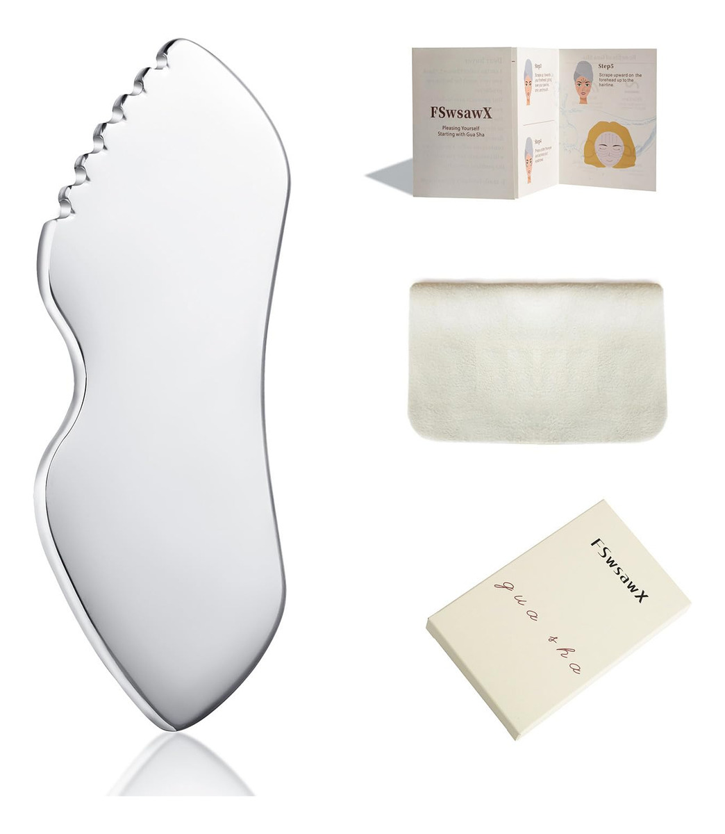 1 – Melhorias no corpo Use o aço inoxidável Gua Sha. Ele pode ajudar com rugas, inchaço e manchas escuras, estimulando a pele, além de aliviar dores musculares e melhorar a circulação sanguínea. – Construção especial Ao contrário de outras pedras de raspagem, esta pedra de raspagem de metal tem um formato especial. Seu tamanho menor se encaixa perfeitamente nos contornos do rosto e é mais propícia à massagem facial. – Instruções de uso A pedra gua sha funciona bem com óleos ou loções de massagem. Por favor, leia o livreto de “Instruções de Uso” antes de usar – Reduz rapidamente o inchaço. O aço inoxidável é autorrefrescante, então não é necessário colocá-lo na geladeira para ajudar a remover o inchaço! Menos trabalho, mais tempo para sua pele — Presente maravilhoso: a ferramenta de gua sha facial inoxidável é um presente para quiropráticos, fisioterapeutas, terapeutas ocupacionais ou massoterapeutas