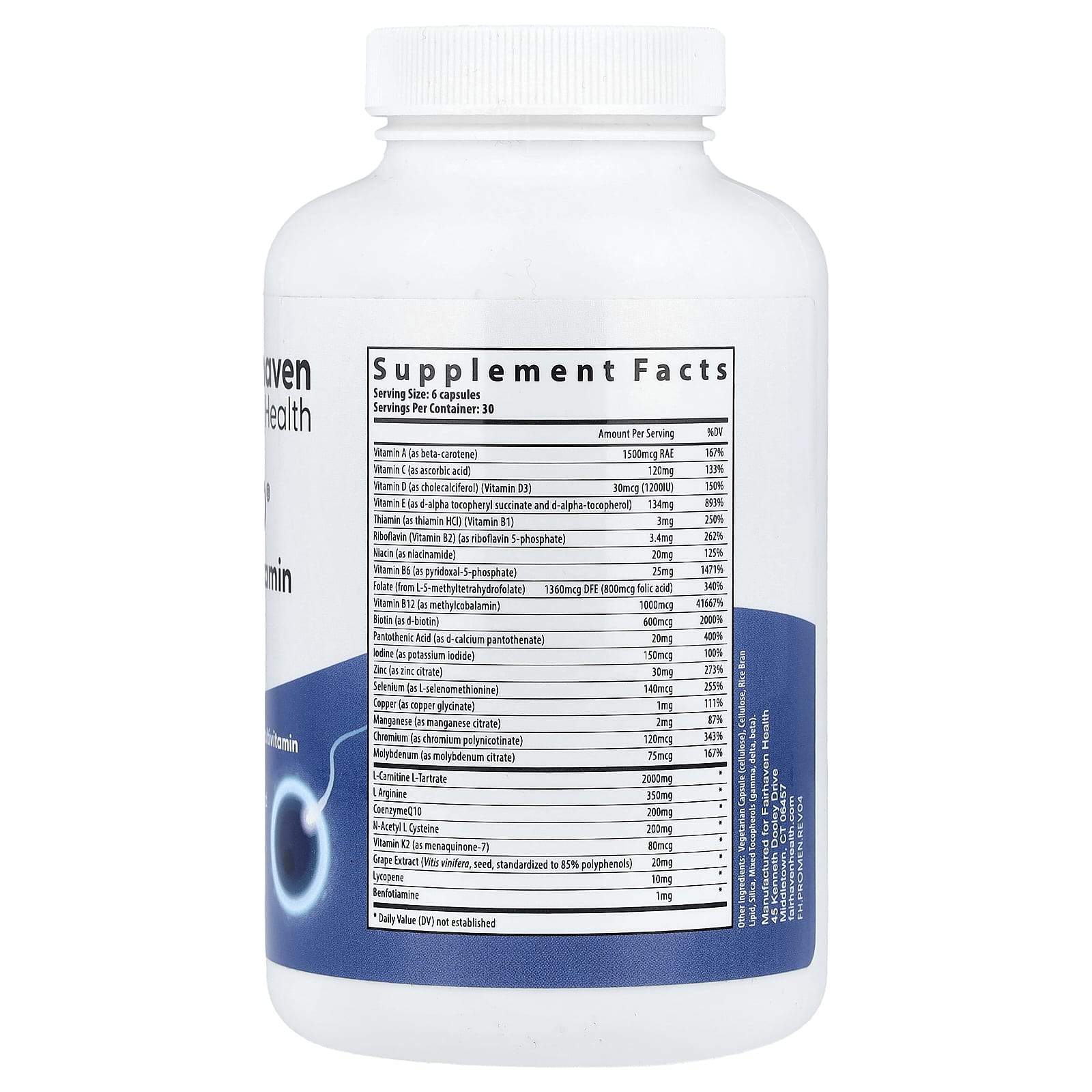 Fairhaven Health FH Pro® para Homens Multivitamínico para Fertilidade 180 Cápsulas – Fairhaven Health Suplementos Saúde do Homem Fertilidade Masculina Multivitamínicos Masculinos.