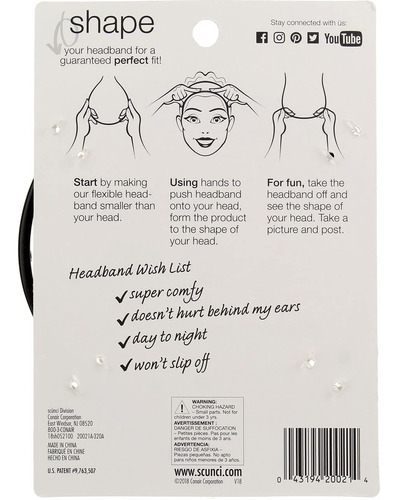 Faixa de cabeça dobrável Scunci No Slip Grip – 3 por estojo.