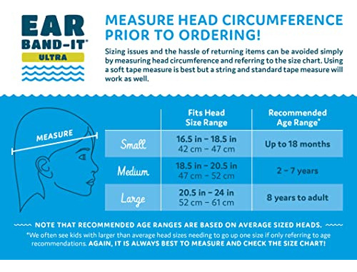 A Ear Band-It Ultra é oferecida a você pelos fabricantes da faixa de cabeça Original Ear Band-It, a faixa de natação ORIGINAL. Desenvolvido por um médico de ouvido, nariz e garganta certificado e projetado para manter a água fora dos ouvidos, proporcionando o máximo de conforto e segurança ao nadar e tomar banho. Após 20 anos de desenvolvimento, temos o orgulho de apresentar o novo e aprimorado Ear Band-It Ultra! ADERÊNCIA EXTRA! Feito com um forro interno personalizado que fornece aderência extra para evitar escorregar da cabeça. Também feito de um material de neoprene muito mais macio e confortável. Os entusiastas da água de todas as idades também gostarão de usar os protetores de ouvido Putty Buddies (vendidos separadamente) e a faixa de cabeça Ear Band-It Ultra na prevenção do ouvido do nadador. Tamanho pequeno: recomendado para crianças de 1 a 3 anos. Serve para a faixa de tamanhos de cabeça de 16" a 19". Tamanho MÉDIO: recomendado para crianças de 4 a 9 anos. Serve para a faixa de tamanhos de cabeça de 17 “a 21". Tamanho grande: recomendado para crianças de 10 a adultos. Serve para a faixa de tamanhos de cabeça de 20 “a 24". Mantenha a água fora, mantenha os protetores de ouvido dentro! Use com seus próprios protetores de ouvido e moldes de ouvido ou com nossos protetores de ouvido moldáveis de silicone macio Putty Buddies (vendidos separadamente). Os Putty Buddies são os melhores protetores de ouvido de natação do mercado.