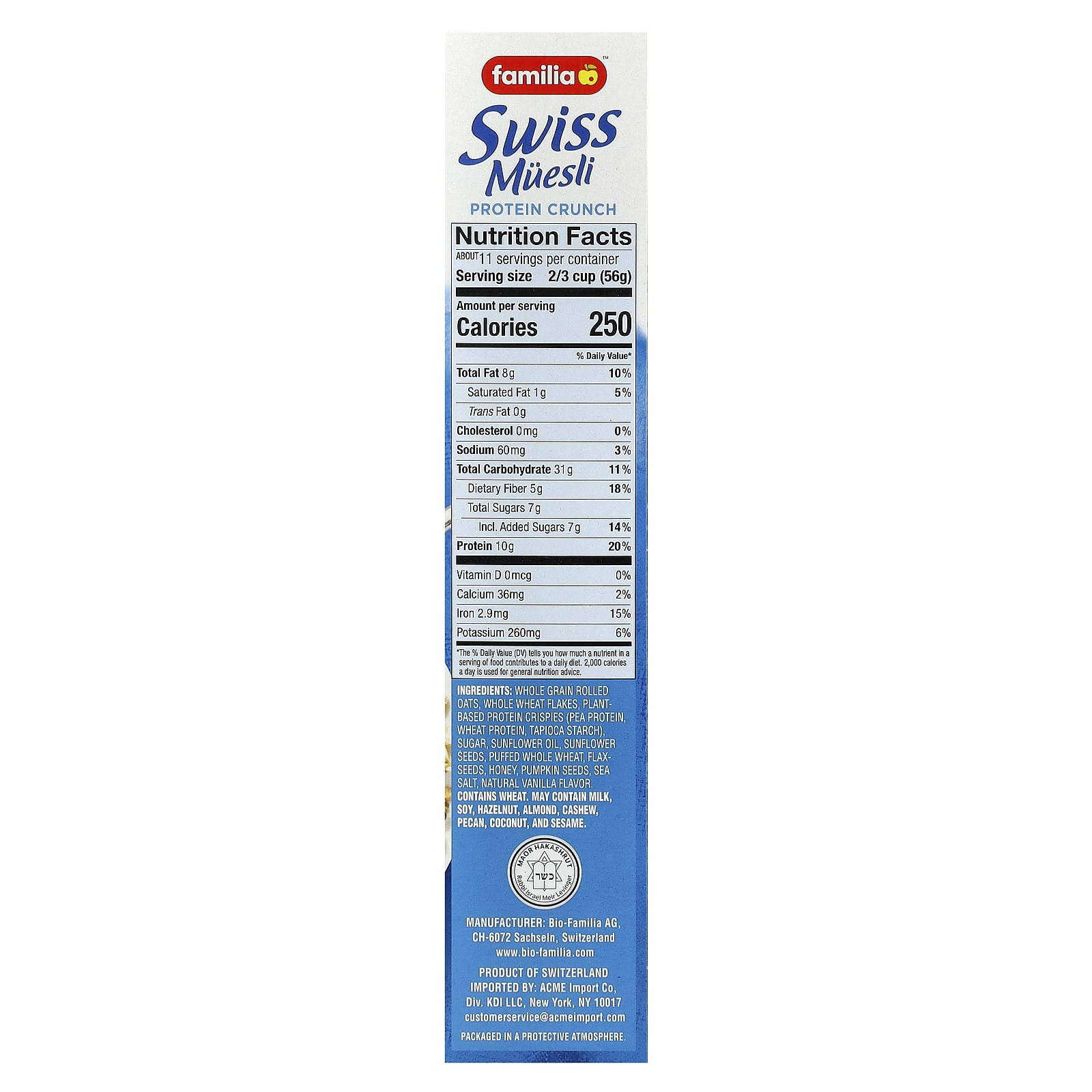 Familia Muesli Suíço Proteína Crocante com Grãos Integrais Flocos Supersementes e Mel 595 g (21 oz) – Familia Alimentos Cereais e alimentos para café da manhã Muesli.