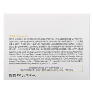 Água, glycereth-26, caprylic/capric triglyceride, dimetildietilenoglicol, glicerina, nicotinamida, cetearyl olivate, sorbitan olivate, álcool cetoestearílico, extrato da fruta Citrus junos (5.000 ppm), extrato de Coptis japonica, betaína, carbômer, arginina, sesquioleato de sorbitana, monoestearato de glicerila, alantoína, adenosina, goma xantana, polyglutamic acid, óleo da fruta de Olea europaea (azeitona), pentilenoglicol, caprylyl glycol, butylene glycol, ethylhexylglycerin, 1,2-hexanediol, tocoferol, edetato dissódico, hydroxyacetophenone, fragrância (perfume), limoneno, linalol.