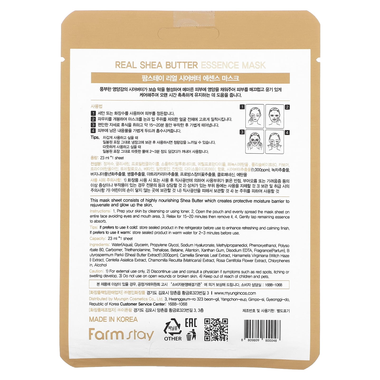Farmstay Máscara de Beleza Essência de Manteiga de Karité Real 1 Unidade 23 ml (078 fl oz) – Farmstay Beleza Máscaras Faciais de Beleza Máscaras Faciais Máscaras em folha K-Beauty.