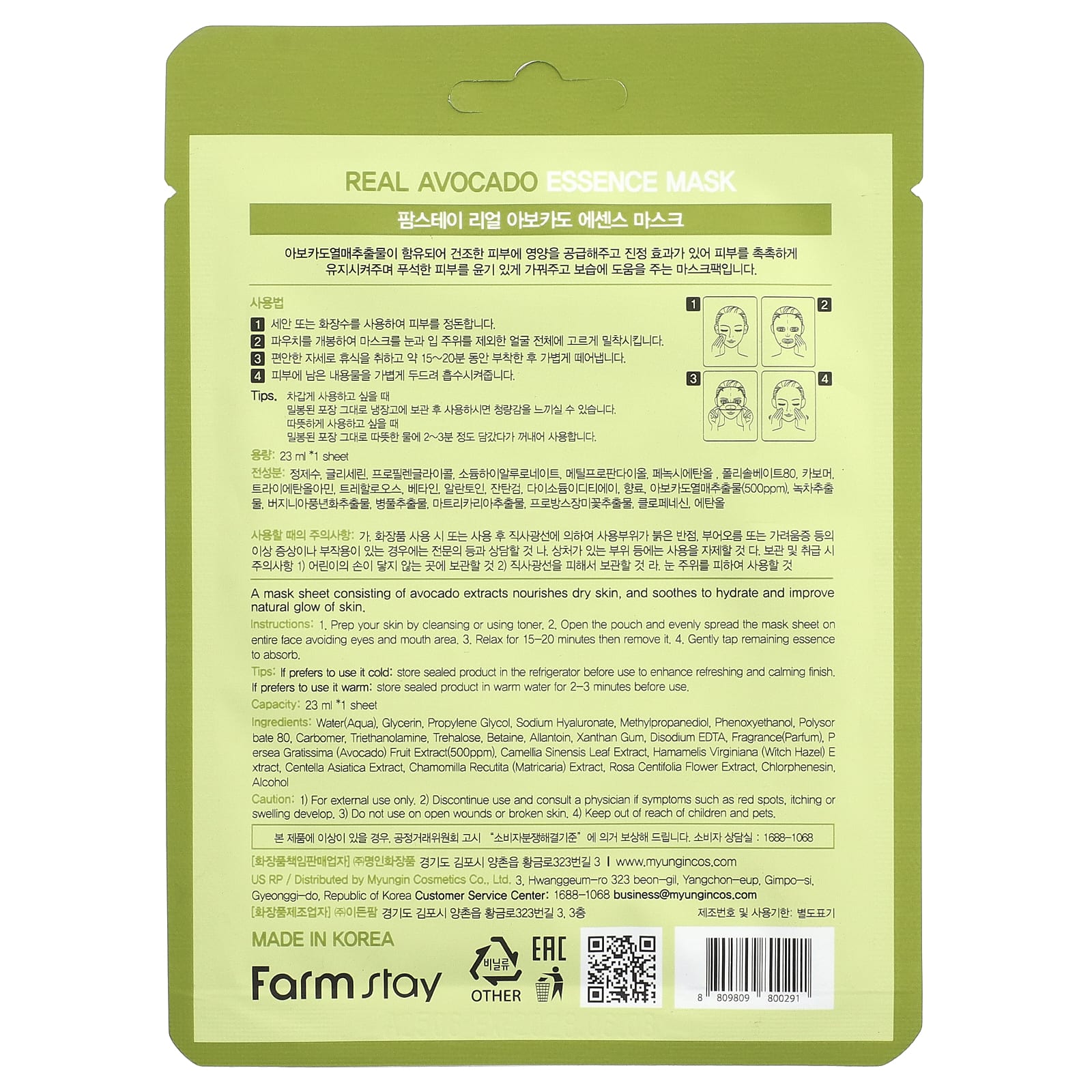 Farmstay Real Avocado Essence Máscara de Beleza 1 Unidade 23 ml (078 fl oz) – Farmstay Beleza Máscaras Faciais de Beleza Máscaras Faciais Máscaras em folha K-Beauty.