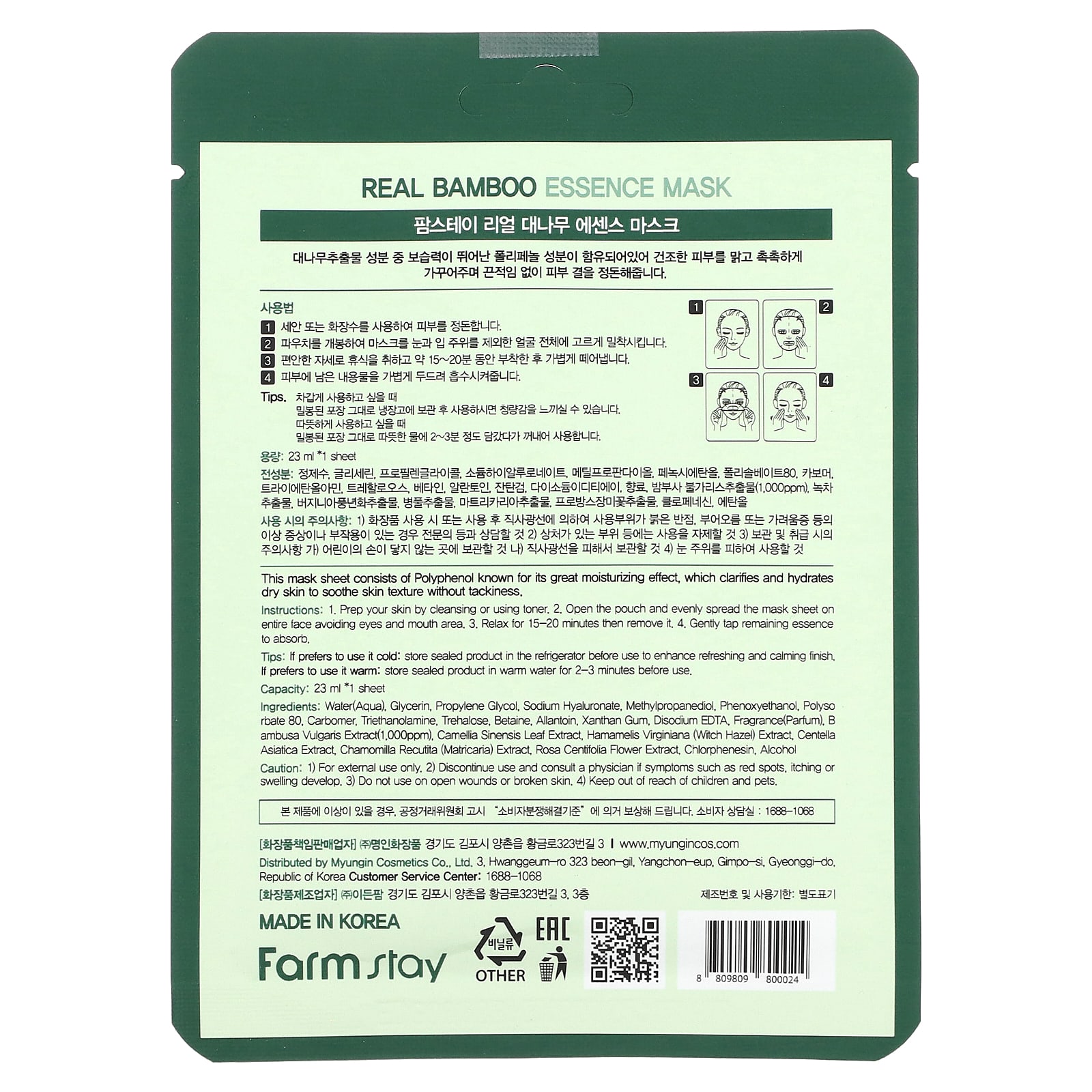 Farmstay Real Bamboo Máscara de Beleza Essence 1 Unidade 23 ml (078 fl oz) – Farmstay Beleza Máscaras Faciais de Beleza Máscaras Faciais Máscaras em folha K-Beauty.