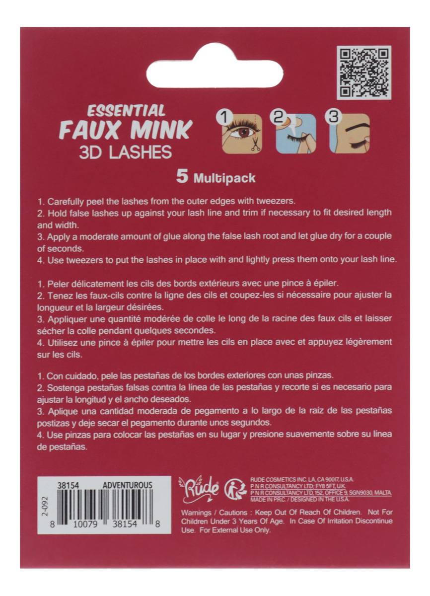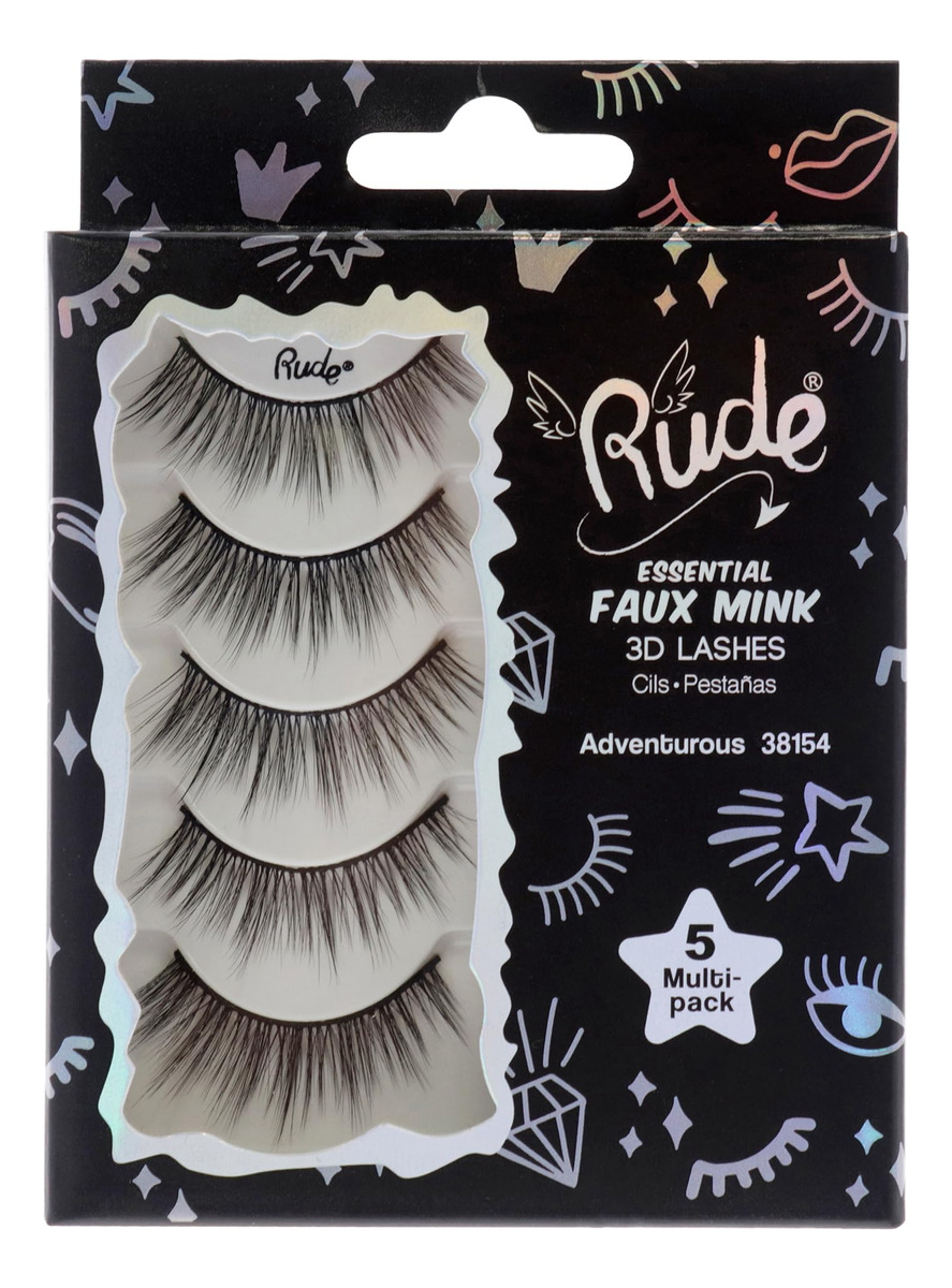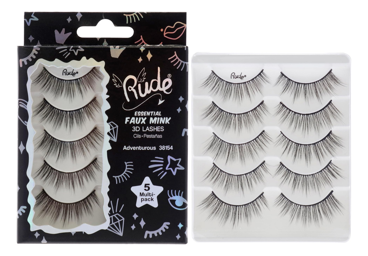 Cílios 3D Essential Faux Mink — Adventurous by Rude Cosmetics para mulheres — 5 pares de cílios — Enfeite