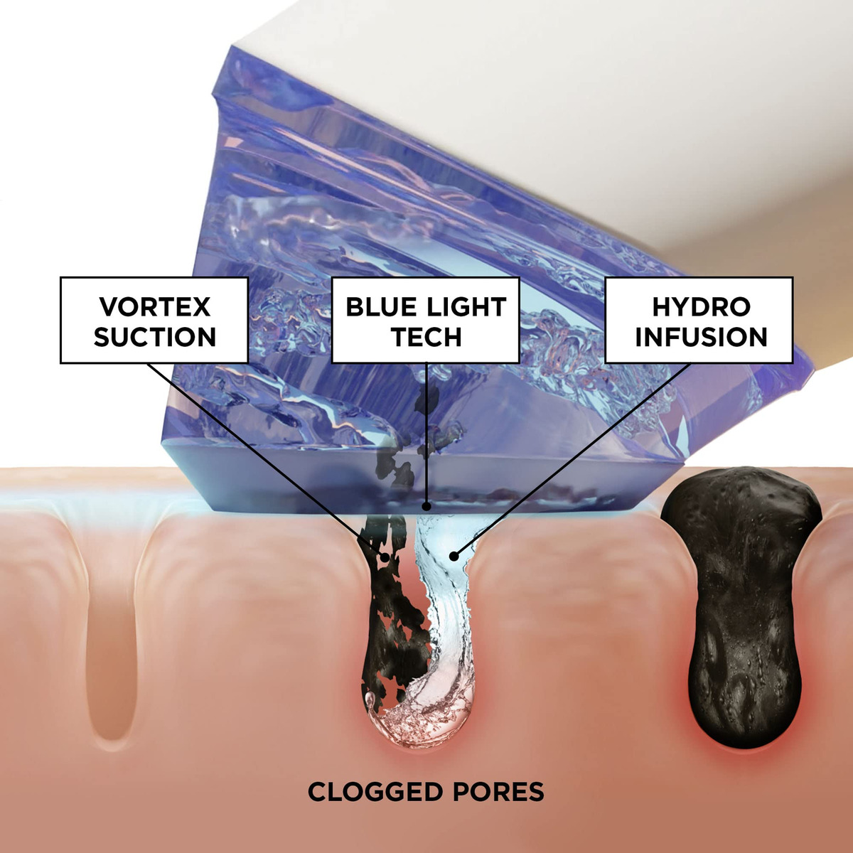 Limpeza de poros profundos com hidroinfusão GloFacial + Ferramenta clareadora de LED azul – Ajuda a esfoliar a pele e remover sujeira, excesso de oleosidade e maquiagem dos poros – Infunde a pele com uma mistura exclusiva de ácido salicílico, ácido hialurônico, extratos botânicos e niacinamida – Os poros parecem mais limpos, firmes e a pele parece carnuda e radiante – O conjunto inclui: Ferramenta de limpeza de poros por hidroinfusão GloFacial, 20 ml. GloFacial Concentrate, pontas de tratamento grandes e pequenas, 1 tampa clarificadora, suporte de carregamento