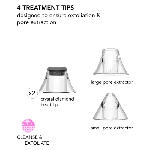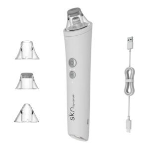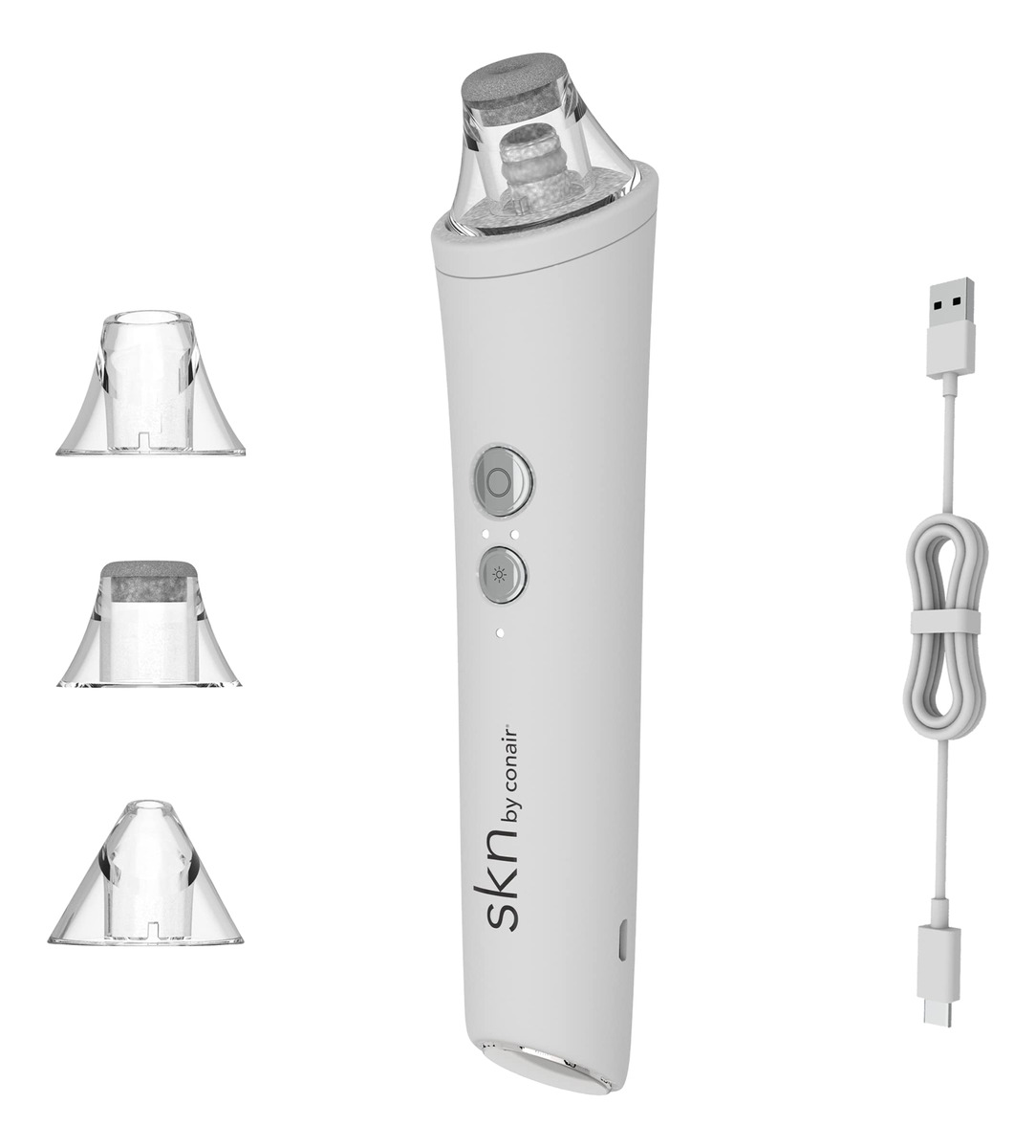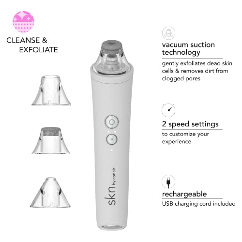 Ferramenta facial de microdermoabrasão skn by conair, aspirador de poros, remove células mortas da pele e sujeira dos poros entupidos – Ferramenta de microdermoabrasão: a sucção suave a vácuo remove as células mortas da pele, ajudando a reduzir a acne e revelar uma pele mais brilhante e lisa. A placa quente localizada na parte inferior abre os poros entupidos para uma extração mais profunda de sujeira, óleo e cravos. – Inclui 4 dicas de tratamento de microdermoabrasão: o extrator de poros pequenos remove cravos e pontos brancos, um extrator de poros grandes para atingir poros entupidos e 2 pontas cristalinas de diamante para uma esfoliação mais profunda. – Perfeito para todos os tipos de pele: suave o suficiente para usar no dia a dia rotina de cuidados com a pele com configurações de 2 velocidades para personalizar sua experiência com sucção a vácuo ajustável. – A ferramenta de microdermoabrasão inclui filtros e cabo de carregamento USB: um ano fornecimento de 4 filtros de metal removíveis e fáceis de limpar e um cabo de carregamento USB. – Máquina de microdermoabrasão: uma ferramenta completa para a pele que possui 4 dicas de tratamento para remover cravos, espinhas e atingir poros entupidos. 2 pontas de cristal em forma de diamante fornecem esfoliação profunda.