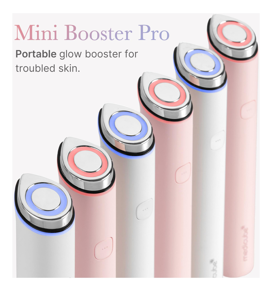 medicube Mini Booster Pro Pink | Ferramenta caseira para cuidados com a pele facial – Glow Booster para pele vidrada, aumenta a absorção de cuidados com a pele, cuidados com a pele coreana – Amplificador de brilho acessível: o Mini Booster Pro é um amplificador de beleza que maximiza a beleza e ajuda a absorver o cuidado com a pele e a preencher o brilho por dentro. – Portátil e fácil de usar: com seu design compacto, o Mini Booster Pro cabe perfeitamente em sua bolsa, oferecendo resultados poderosos e confiáveis onde quer que você vá. – Cuidado calmante intensivo: nossa varinha suave para a pele foi projetada para todos os tipos de pele, incluindo peles problemáticas. É uma ferramenta poderosa e calmante, perfeita para cuidar após as manchas e melhorar sua rotina de cuidados com a pele. – Benefícios comprovados: desbloqueie conquistas transformadoras de cuidados com a pele com o Mini Booster Pro, aumentando a taxa de absorção da pele em 562% e maximizando a eficácia de seus amados produtos para a pele do dia a dia. *Ensaio clínico testado pela Tego Science. '/ Os resultados podem variar dependendo do tipo de pele individual. – Fabricado na Coreia: o medicube Mini Booster Pro foi orgulhosamente projetado e fabricado na Coreia, com a tecnologia avançada exclusiva da medicube. – Como usar e carregar: nenhum cabo de carregamento USB incluído. Para carregar o produto, use um cabo USB tipo C com uma tensão de entrada de DC 5V e no máximo 2A.