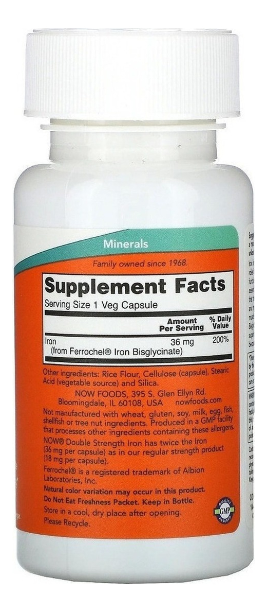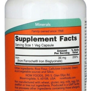 Conheça o poder do Ferro Bisglicinato 36mg da NOW Foods, encapsulado em 90 cápsulas vegetais para atender às suas necessidades nutricionais diárias. Este suplemento é cuidadosamente formulado para fornecer uma fonte de ferro de alta qualidade, essencial para a manutenção da saúde e vitalidade. Livre de glúten e sem lactose, é a escolha perfeita para quem busca uma opção segura e eficaz para complementar sua dieta.