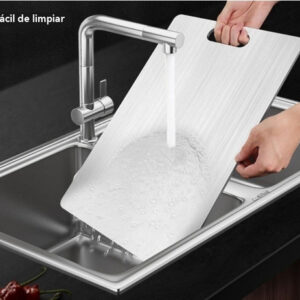 saudável e segura: nossa tábua de cortar é feita de titânio 100% puro, um material confiável para implantes cirúrgicos. Ao contrário das tábuas de corte de madeira e plástico, as tábuas de corte de titânio puro não absorvem líquidos, são fáceis de limpar e não deixam odor ou resíduos sutis de alimentos, o que as torna uma escolha saudável para sua cozinha.
