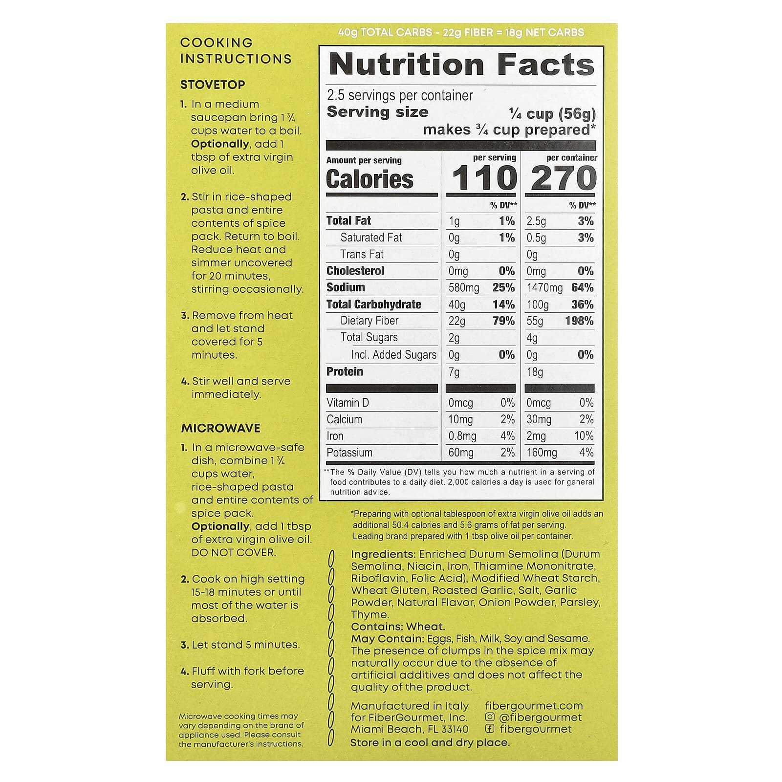 Fiber Gourmet Macarrão Arroz Alho e Pilaf de Ervas 141 g (5 oz) – Fiber Gourmet Alimentos Alimentos embalados e prontos Arroz.
