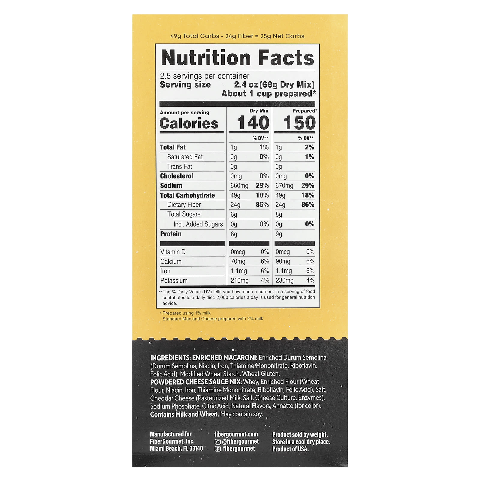 - 25 g de Carboidratos Líquidos — Macarrão e Queijo Padrão 48 g de Carboidratos Líquidos