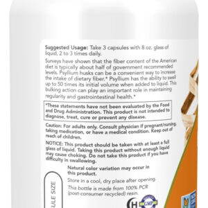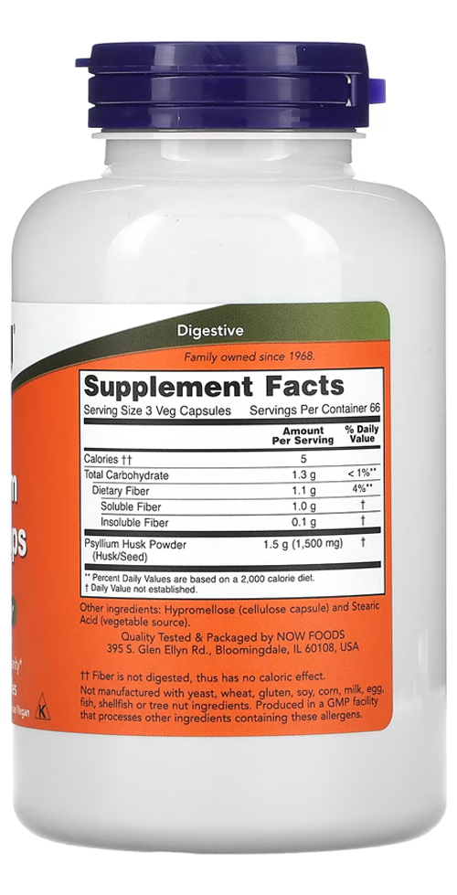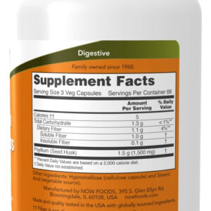 A Fibra de Psyllium da Now Foods é apresentada em cápsulas vegetais, tornando-se uma opção perfeita para quem procura um suplemento à base de ingredientes naturais. Com 500mg em cada cápsula, você obtém uma dose adequada de Psyllium Husk.